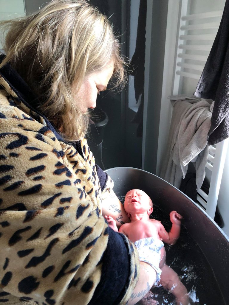 Een van de laatste dagen dat Karin er was ben je nog even lekker in bad geweest, Karin gaf het voorbeeld daarna nam ik het over. Je vond het zo lekker je lag helemaal te spartelen. Ik vond het de eerste keer wel eng om je in bad te doen, je was nog zo klein. Zodra we klaar waren met badderen smeerde ik je lekker in met zwitsal body lotion, je vond het zo lekker om op je buit te liggen terwijl je rug lekker werd gemasseerd.